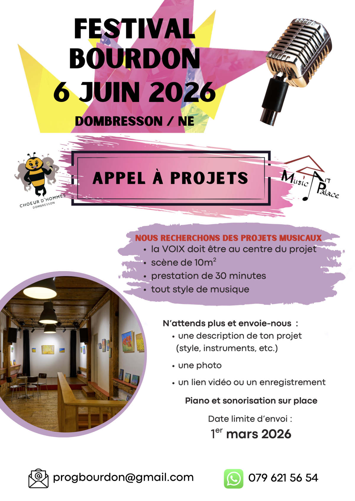 Besoin d'informations avant de répondre à l'appel ? Contact progbourdon@gmail.com / 079 621 56 54