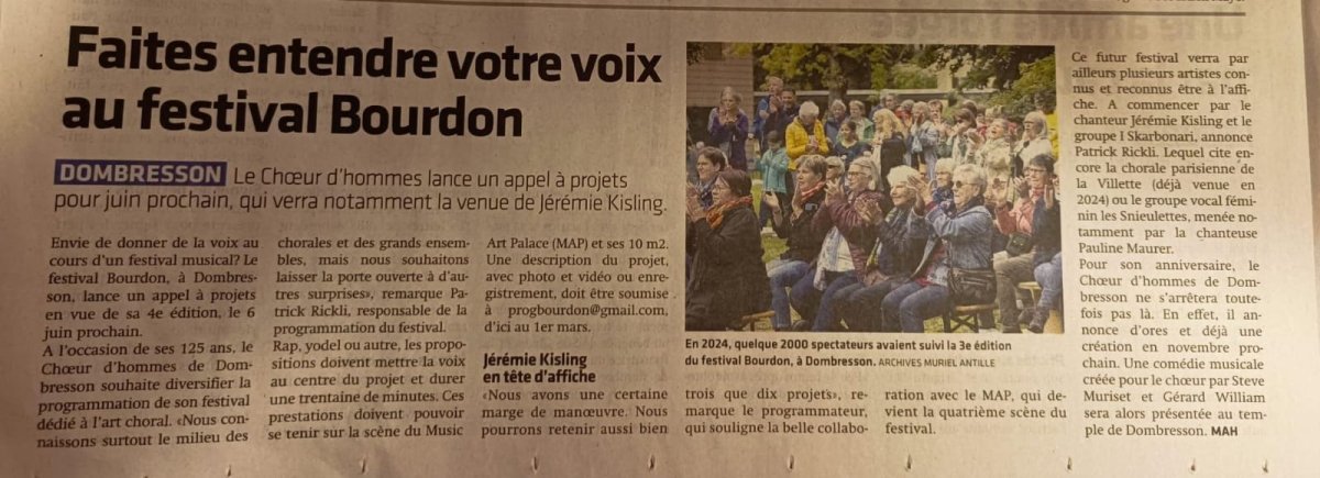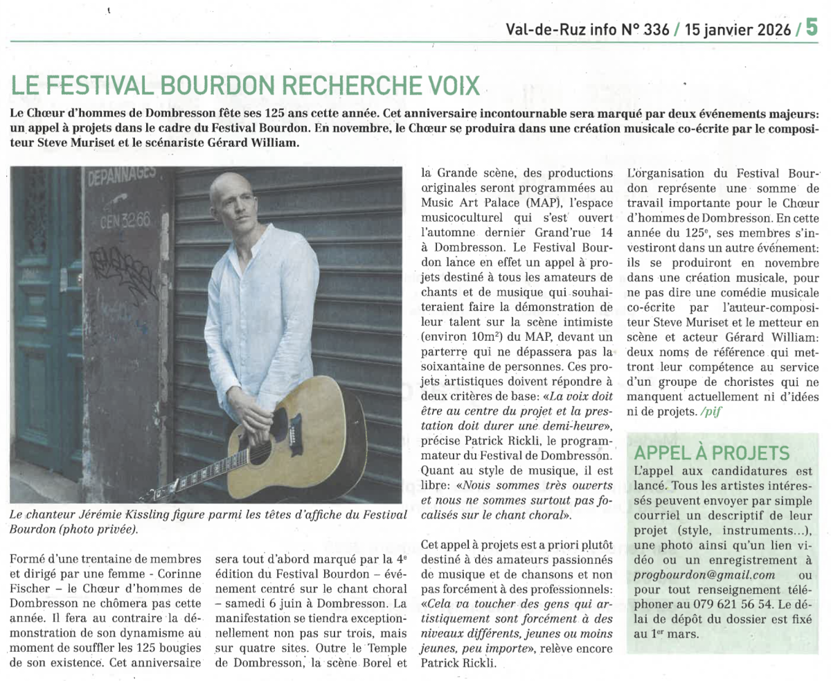 FESTIVAL BOURDON4ème éditionSamedi 6 juin 2026Dombresson (Neuchâtel)